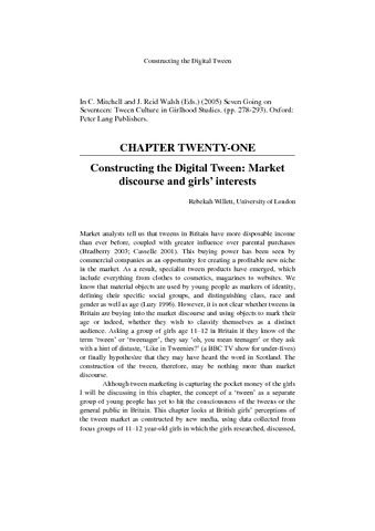 | Title: | Constructing the Digital Tween: Market forces, adult concerns and girls interests |