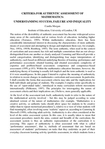 | Title: | Criteria for authentic assessment of mathematics: Understanding success, failure and inequality |