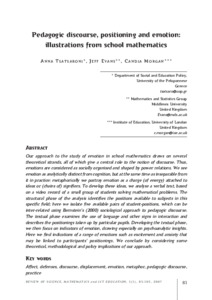 Title: | Pedagogic discourse, positioning and emotion: illustrations from school mathematics |