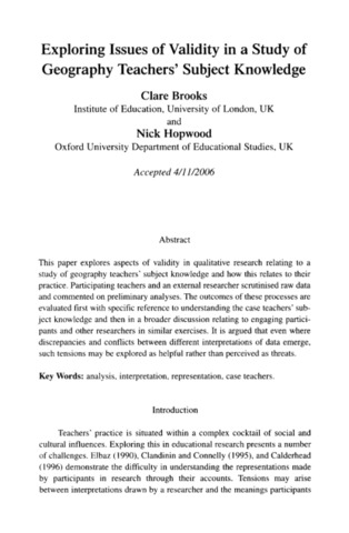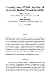 Title: | Exploring Issues of Validity in a Study of Geography Teachers’ Subject Knowledge |
