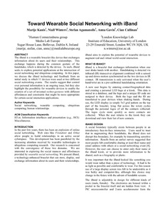 | Keywords: | Human relationships; social networking; ubiquitous computing; wearable computing |