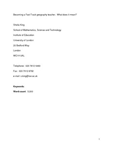 Title: | Becoming a Fast Track Geography Teacher: What does it mean? |