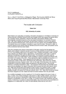 This chapter provides an exploration of meaning, information and pleasure in Sid Meier's Civilization III. Various theorists, including Poblocki and Douglas have argued that games within the Civilization series perpetrate a reductive folk-history that positions Western-style technologically orientated progress as 'the only logical development' for humanity. In moving from a critique of the game's rules and the prejudicial bias that they house, to the continuity of myths within Western popular culture, and then to statements about the effect of the game on its users, these discussions stray across Salen and Zimmerman's three schema: evidence tends to be collected from two schemas (rules, culture), yet conclusions are drawn in a third (play). The trouble with such critique is that play is the schema of the experiential, and it involves the actualization, interpretation and configuration of the game in real-time by users.