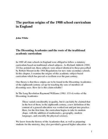 Title: | The Puritan origins of the 1988 school curriculum in England |