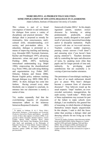 Title: | More Helpful as Problem than Solution: Some Implications of Situating Dialogue in Classrooms |