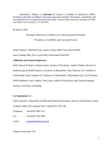 Title: | Psychiatric disorders in children with autism spectrum disorders: Prevalence, comorbidity and associated factors in a population-derived sample |