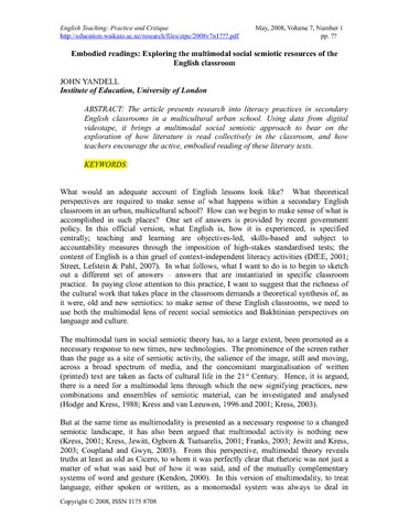 Embodied readings : exploring the multimodal social semiotic resources of the English classroom.