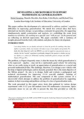 | Title: | Developing a microworld to support mathematical generalisation |