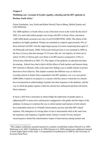 Title: | Mobilizing care: Accounts of gender, schooling and the HIV epidemic in Durban, South Africa |