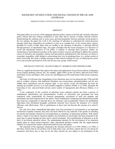 Title: | Sociology of Education and Social Change in the UK and Australia |