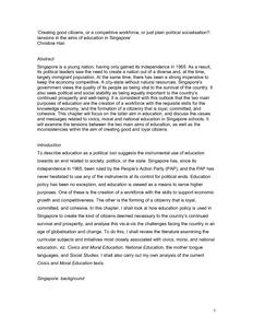 Title: | Creating good citizens, or a competitive workforce, or just plain political socialisation? : Tensions in the aims of education in Singapore |