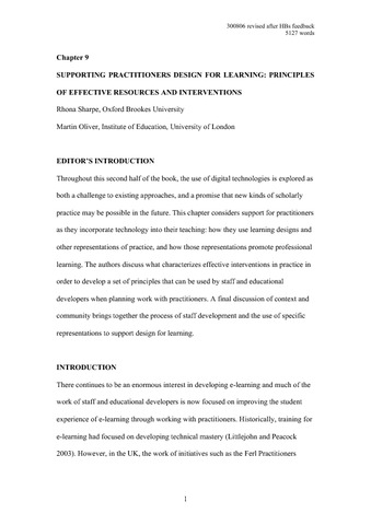Title: | Supporting practitioners' design for learning: principles of effective resources and interventions |