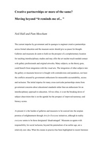 Title: | Creative partnerships or more of the same? Moving beyond “it reminds me of... ” |