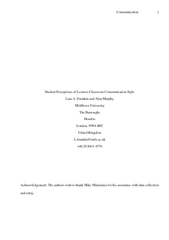 Title: | Student Perceptions of Lecturer Classroom Communication Style |