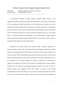 Title: | The Place of Cognitive Style in Pedagogy: Realising Potential in Practice |