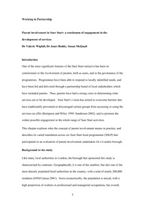 Title: | Parent involvement in Sure Start: a continuum of engagement in the development of services |