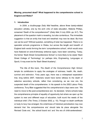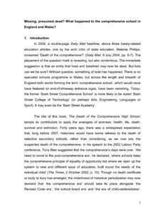 | Title: | Missing, Presumed Dead? What Happened to the Comprehensive School in England and Wales |