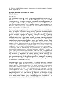 The Government invited the United Nations Special Rapporteur on the Right to Education to conduct a Mission in the United Kingdom during October 1999 (Tomasevski, 1999). The Special Rapporteur welcomed the Government’s initiative in making human rights central to global development, education and relief of poverty. The Government had committed itself to `using its influence to seek the realisation of the social and economic rights contained in the Universal Declaration for all the people in the world’ (FCO/DFID, 1998).