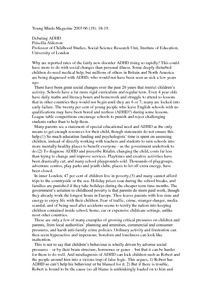 Why are reported rates of the fairly new disorder ADHD rising so rapidly? This could have more to do with social changes than personal illness. Some deeply disturbed children do need medical help, but millions of others in Britain and North America are being diagnosed with ADHD, who would not have been seen as sick a few years ago. There have been great social changes over the past 20 years that restrict children’s activity. Schools have a far more rigid curriculum and regular tests. Even 4 year olds have daily maths and literacy hours and homework and struggle to attend to lessons that in other countries they would not begin until they are 6 or 7; many are locked into early failure. The twenty per cent of young people who leave English schools with no qualifications may have been bored and restless (ADHD?) during some lessons. League table competitions encourage schools to punish and reject challenging students rather than to help them.