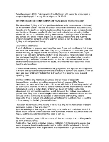 | Title: | Fighting spirit: should children with cancer be encouraged to adopt a "fighting spirit"? |