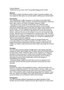 This article considers the different kinds of rights of premature babies, and how respect for their rights can promote babies’ wellbeing and mental health.