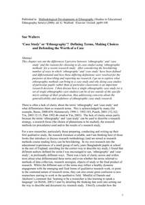 Title: | 'Case Study' or 'Ethnography'? Defining Terms, Making Choices and Defending the Worth of a Case |
