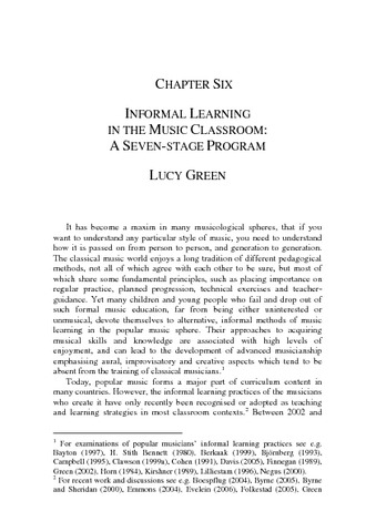| Title: | Informal learning in the music classroom: a seven-stage program |