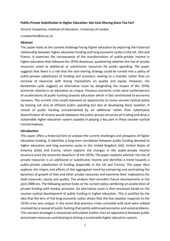 Text (Public-private substitution in higher education: has cost-sharing gone too far)