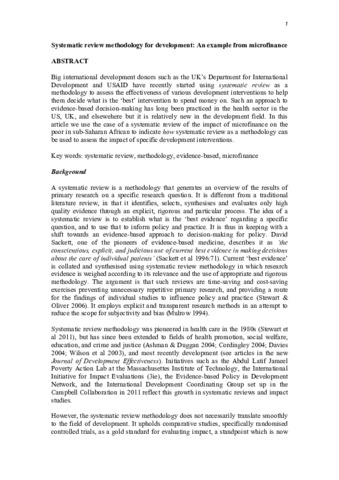 | Title: | Systematic review methodology for development: An example from microfinance |