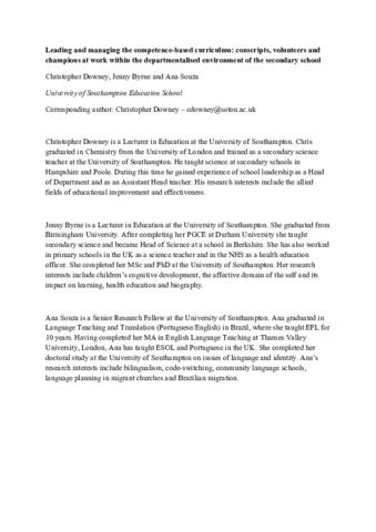 | Title: | Leading and managing the competence-based curriculum: conscripts, volunteers and champions at work within the departmentalised environment of the secondary school |