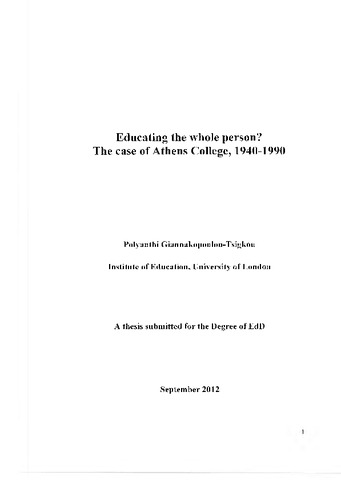 | Title: | Educating the whole person : the case of Athens College, 1940-1990 |