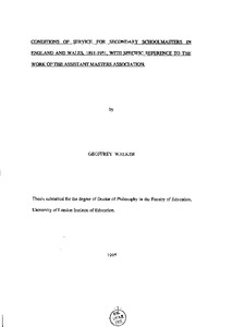 Conditions of service for secondary schoolmasters in England and Wales, 1891-1951, with special reference to the work of the Assistant Masters Association.