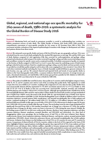 Title: | Global, regional, and national age-sex specific mortality for 264 causes of death, 1980-2016: a systematic analysis for the Global Burden of Disease Study 2016 |