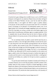 It has been both a great challenge and an incredible honour to work on SLOVO Journal during such a thriving year for our awareness of Russian history and culture, marking the centenary of the Russian Revolution, but also a year that has tested the academic community’s ability to come together and defend its right to academic freedom. In the past year, we have produced two pronounced issues under VOL. 29 of SLOVO Journal, concentrating on the publication of interdisciplinary academic work of the highest standard. As an exclusively self-managed postgraduate project, and a unique part of the UCL Press family, we continue to provide some of the freshest insight into the Russian, East & Central European and Eurasian regions to our global readership. I’d like to repeatedly thank this year’s Editorial Board and the School of Slavonic and East European Studies for the precious amounts of time and dedication offered to SLOVO Journal.