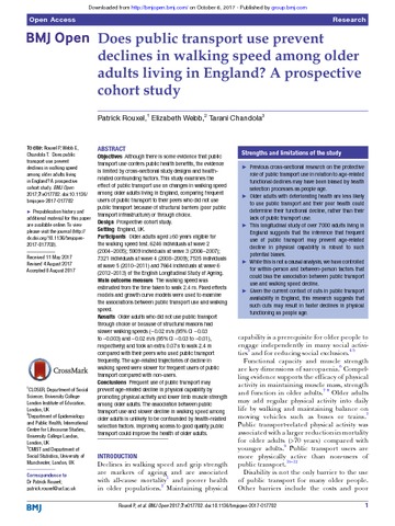 Title: | Does public transport use prevent declines in walking speed among older adults living in England? A prospective cohort study |