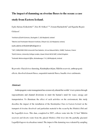 | Title: | The impact of damming on riverine fluxes to the ocean: A case study from Eastern Iceland |