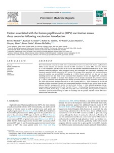 Factors associated with the human papillomavirus (HPV) vaccination across three countries following vaccination introduction.