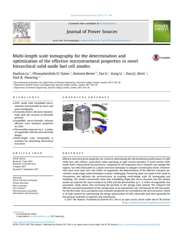| Title: | Multi-length scale tomography for the determination and optimization of the effective microstructural properties in novel hierarchical solid oxide fuel cell anodes |