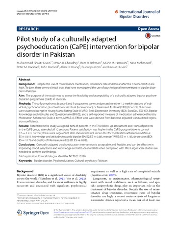 Title: | Pilot study of a culturally adapted psychoeducation (CaPE) intervention for bipolar disorder in Pakistan. |
