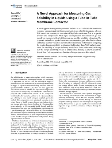 Title: | A Novel Approach for Measuring Gas Solubility in Liquids Using a Tube-in-Tube Membrane Contactor |