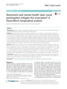 Title: | Retirement and mental health: Dose social participation mitigate the association? A fixed-effects longitudinal analysis |