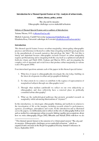 Title: | The city and its margins: Ethnographic challenges across makeshift urbanism: Introduction |