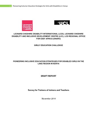 Title: | Girls’ Education Challenge. Pioneering Inclusive Education Strategies for disabled girls in the Lake Region of Kenya: Survey for trainers of trainers and teachers. Draft Report |