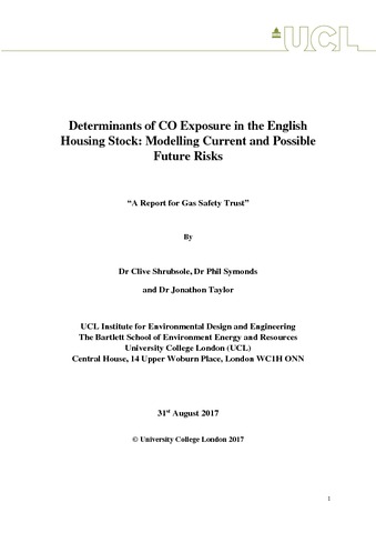 Title: | Determinants of CO Exposure in the English Housing Stock: Modelling Current and Future Risks |
