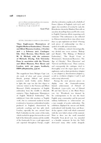 Title: | ‘Opus Anglicanum: Masterpieces of English Medieval Embroidery’, Victoria and Albert Museum, London, 1 October 2016 – 5 February 2017. |