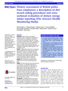 Title: | Dietary assessment of British police force employees: A description of diet record coding procedures and cross-sectional evaluation of dietary energy intake reporting (The Airwave Health Monitoring Study) |
