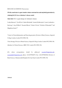 Title: | PPAR gamma-coactivator-1 alpha gene transfer reduces neuronal loss and amyloid-beta generation by reducing beta-secretase in an Alzheimer's disease model |