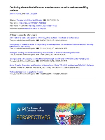 Title: | Oscillating electric-field effects on adsorbed-water at rutile- and anatase-TiO2 surfaces |