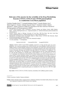 Title: | Relevance of the ancestry for the variability of the Drug-Metabolizing Enzymes CYP2C9, CYP2C19 and CYP2D6 polymorphisms in a multiethnic Costa Rican population |