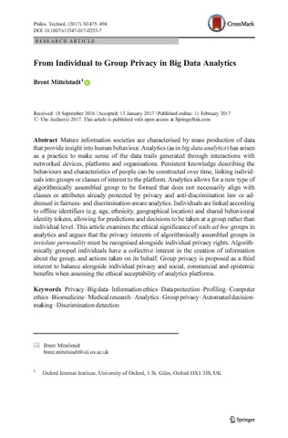 Title: | From Individual to Group Privacy in Big Data Analytics |